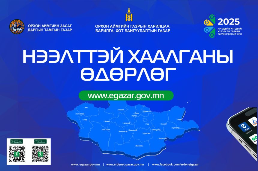 Газрын харилцаа, барилга, хот байгуулалтын газраас “НЭЭЛТТЭЙ ХААЛГАНЫ ӨДӨРЛӨГ”- г- 2025.09.10 - 2025.09.18 өдрүүдэд Баян-Өндөр, Жаргалант сумын багийн иргэний танхим, соёлын төвд зохион байгуулагдах тул…